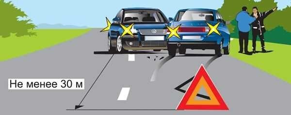 1. Остановиться, выключить двигатель, включить аварийную сигнализацию, выставить знак аварийной остановки, не перемещать предметы имеющие отношение к ДТП.