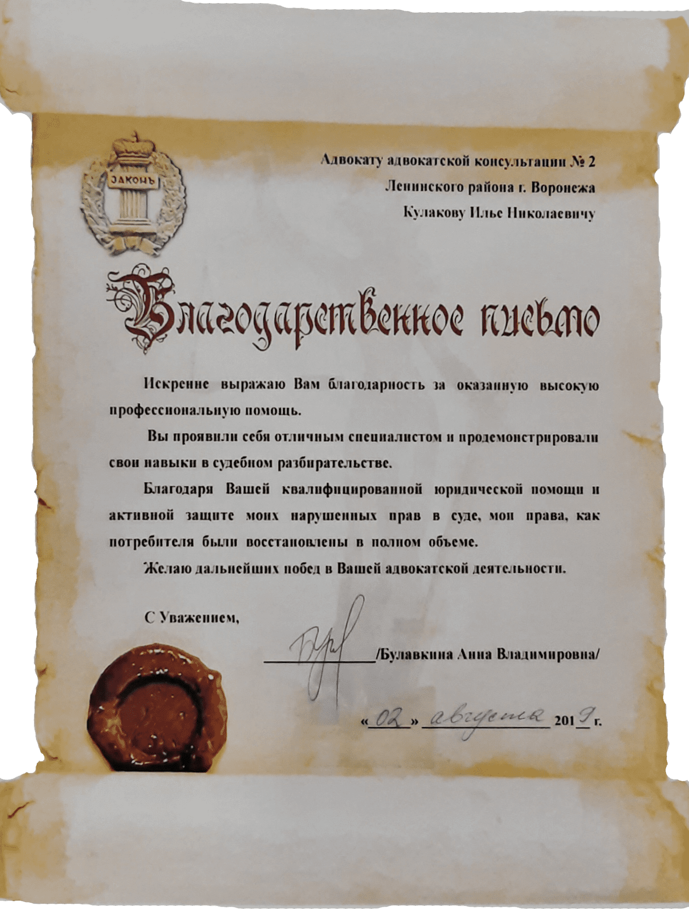 2. Все мои знания и огромный опыт ведения дела в суде будут направлены на положительное решение Вашего дела.