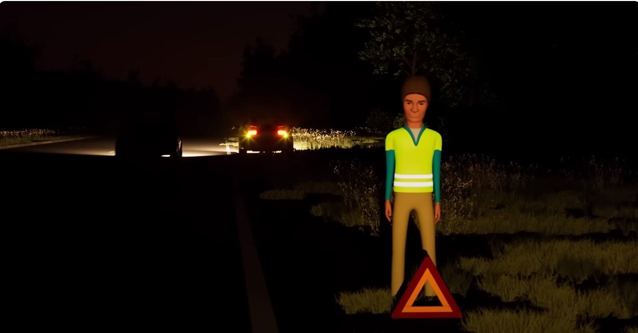 2. Вне населенного пункта в темное время суток либо в условиях плохой видимости, одеть жилет с полосами световозвращающего материала.