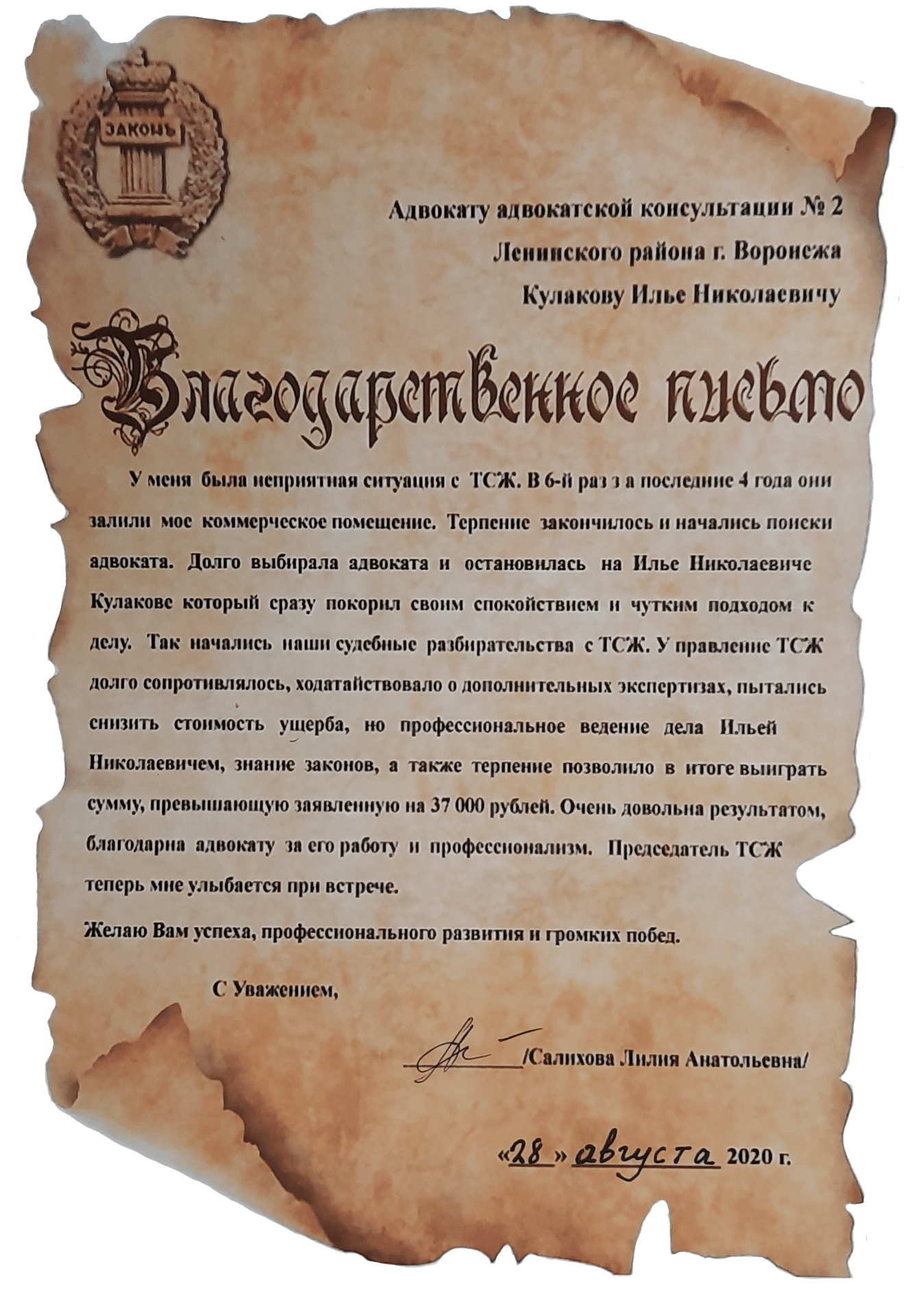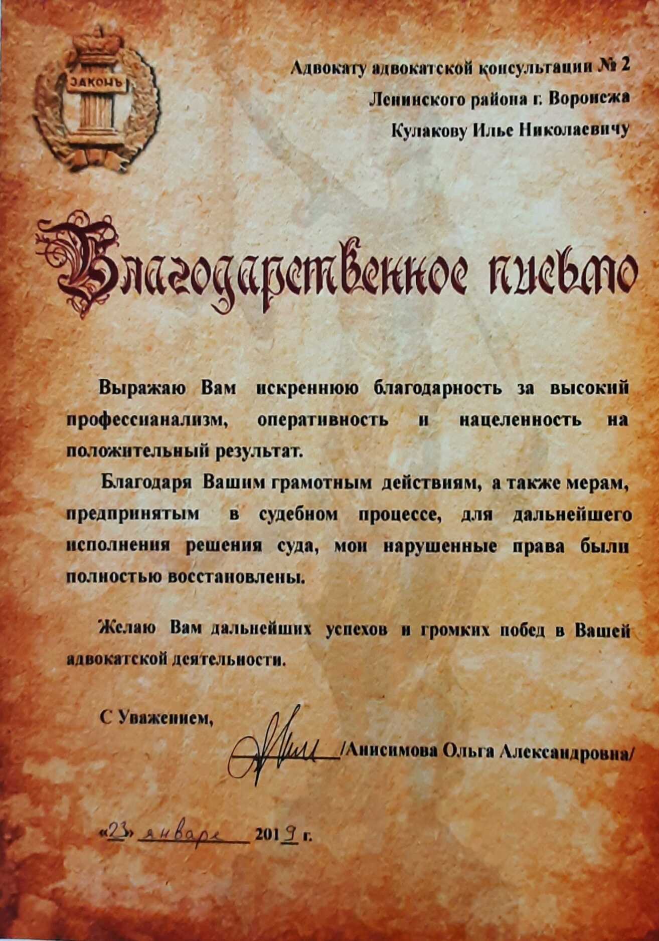 2. Все мои знания и огромный опыт ведения дела в суде будут направлены на положительное решение Вашего дела.